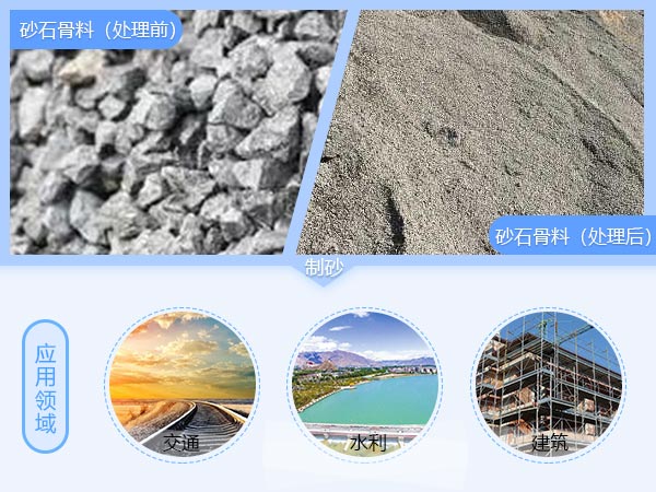 我國礦產(chǎn)資源豐富,許多山上開采下來的石料都可加工成沙子,能夠替代天然砂成為建筑、公路等領(lǐng)域的主要用砂。像鵝卵石、河卵石、青石、石灰石、石英石等等,這些石料在自然中存量非常大,本身其用途并不大,但是經(jīng)過加工,制成人工砂,其使用價(jià)值就得到了提高。石料制砂一般要經(jīng)過粗破、制砂、篩分、洗選等幾步作業(yè)流程。其工藝流程大概是這樣的:首先,石料由顎式破碎機(jī)進(jìn)行初步破碎,然后破碎成的的粗料由膠帶輸送機(jī)輸送至對輥制砂機(jī)進(jìn)行細(xì)碎,細(xì)碎后的石料進(jìn)振動篩篩分出兩種石子,滿足制砂機(jī)進(jìn)料粒度的石子進(jìn)制砂機(jī)制砂,另一部分返料進(jìn)細(xì)破。進(jìn)對輥制砂機(jī)的石料一部分制成砂,經(jīng)洗砂機(jī)(可選)清洗后制成成品砂,另一部分進(jìn)制砂機(jī)再次破碎。整條石料制砂生產(chǎn)線設(shè)備主要由振動給料機(jī)、鄂式破碎機(jī)、對輥制砂機(jī)、振動篩、洗砂機(jī)、皮帶輸送機(jī)等設(shè)備組成。