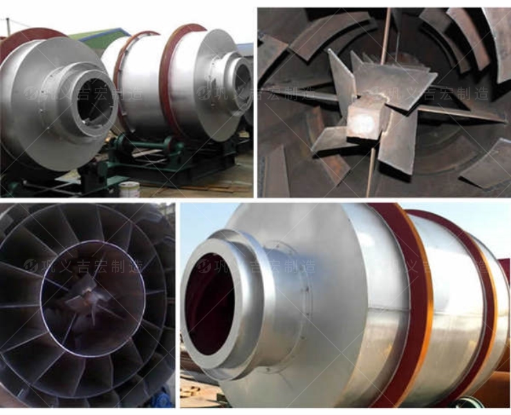 原料從進料裝置輸送到轉鼓內部,并在平行流中干燥。原料被連續(xù)地拾取并分散在內部的造紙板下面,以螺旋的方式被加熱,然后原料從另一端移動到中間層,并被逆流干燥。原料在中層以兩步一步行進的方式反復炒制。原料在中間層可以極大的吸收中間層的熱量,會使原料長時間干燥。行進到中間層的另一端后,原料落入外層。原料在外輥中以矩形多圈方式行進進行干燥。達到干燥效果的原料在熱空氣的作用下迅速從滾筒中排出。如果達不到干燥效果,濕料由于自身重量無法快速排出,會繼續(xù)在長方形的造紙板中干燥,直到達到干燥標準。