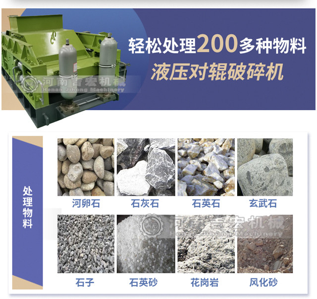 液壓對輥破碎機適用于 河卵石、方解石、石英石、大理石、鵝卵石、膨潤土、鐵礦石、石灰石、生石灰、石英砂、青石、山石...